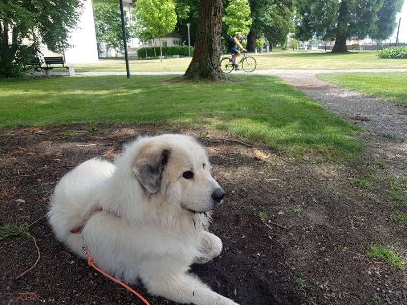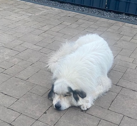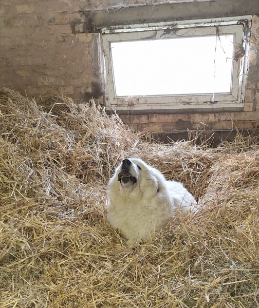 stejně jako fenka pyrenejského ovčáka týden před porodem!