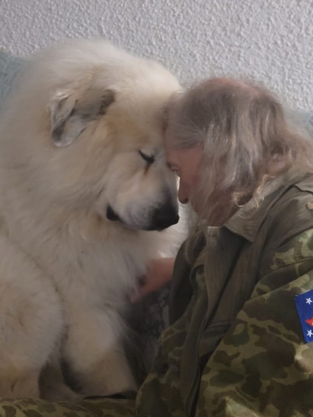 O pozemek se úžasně stará, cizí lidé do něj nemohou, je tam Skippy II. Jinak je to velmi milý a mazlivý